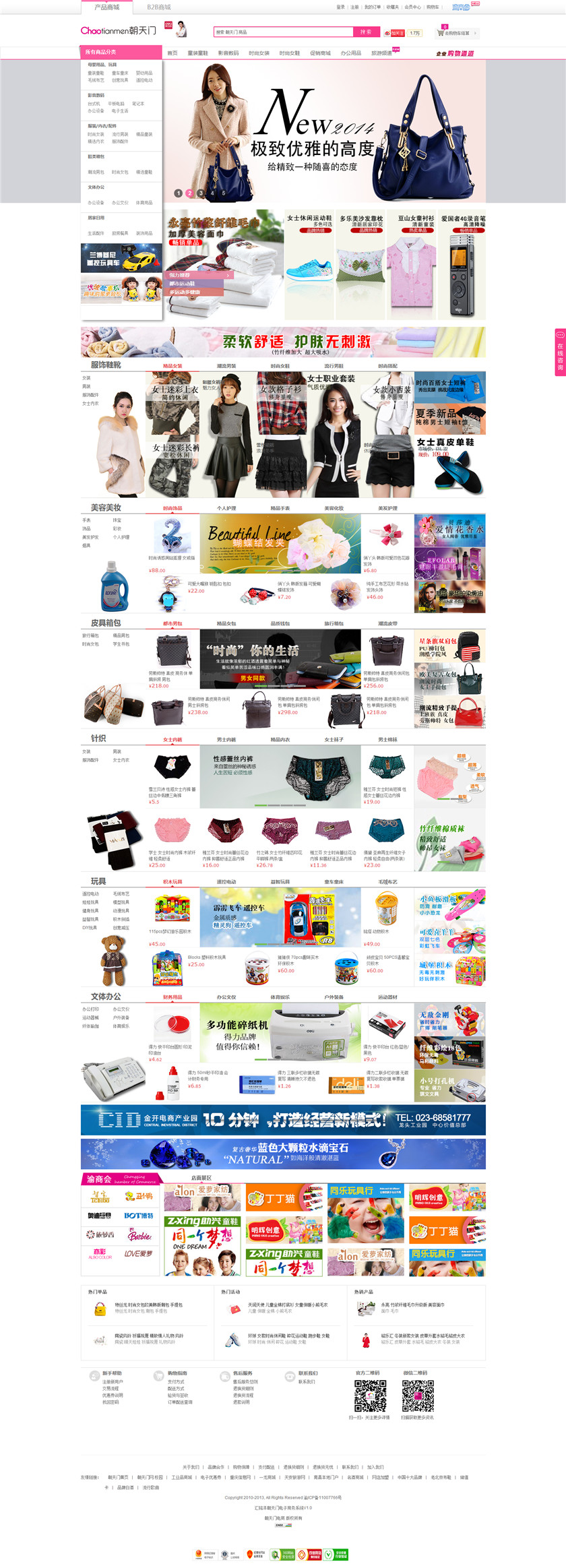 朝天门网隶属于重庆汇铭洋市场经营管理有限公司。朝天门网是以优质、时尚为网站定位的大型的B2B和B2C电子商务平台;销售商品类别主要集中于童鞋、玩具、文具等。朝天门特卖商城是依托朝天门批发市场资源,以大幅优惠的价格销售上万款知名品牌的时尚商品。